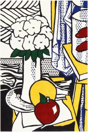 Roy Lichtenstein’s Still Life, which we are presenting, is quite revealing of the power of tapestry, as it combines the vocabulary of Pop Art with this medium, which gives the image a lasting presence. This emblematic piece invites us to reflect on the transformation of the Ben-Day dot into a thread weave, giving an unexpected texture to the icon of consumerism.